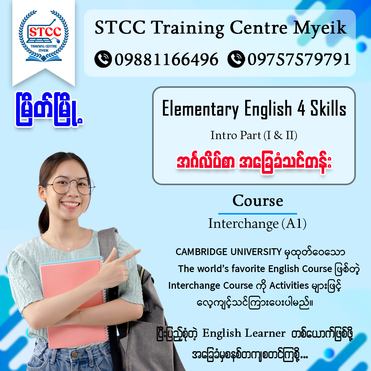 ကွန်ပျူတာ နှင့် အင်္ဂလိပ်စာ အခြေခံမှ အဆင့်မြင့်သင်တန်းများအထိ STCC တွင် သင်ယူနိုင်ပါပြီ
